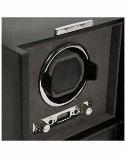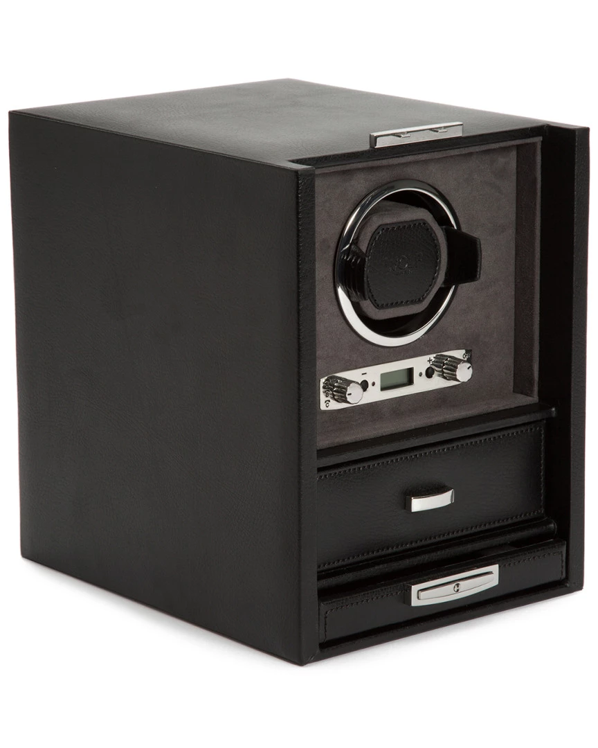 WOLF Blake Leather Single Winder With Storage Home Jewelry Boxes & Watch Winders