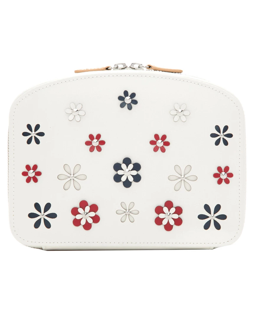 - Design details: Red, white and blue combined delicately into hand-cut leather petals of a flower joined with studs. This fun and feminine Blossom Travel Zip is the perfect companion for safekeeping your jewelry at home or on your travels abroad. Guaranteeing protection of your jewelry with soft LusterLoc treated suede linings. Under typical storage conditions, LusterLoc may prevent tarnishing for up to 35 years; Storage: 3 zip pouches, 4 necklace hooks, a ring holder and an earring holder