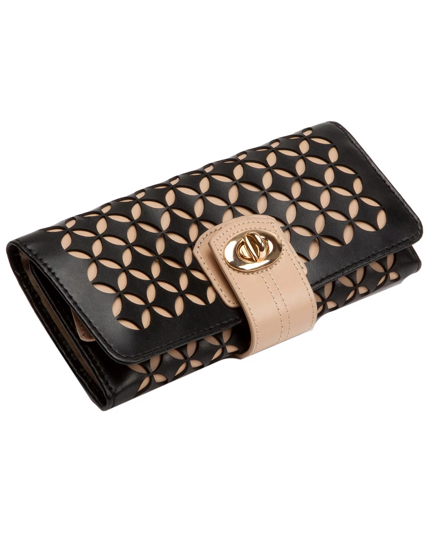 - Design details: Black laser cut leather in intricate design, Chloe reflects the romantic and thoughtful you. Perfect for the devout jetsetter, organize and store your jewelry safely with Chloe jewelry roll. Includes cream leather, mirror, gold finished hardware, and patented LusterLoc lining to absorb the hostile gases known to cause tarnishing for up to 35 years. ; Storage: 2 ring holders, 8 earring holes and 4 storage compartments