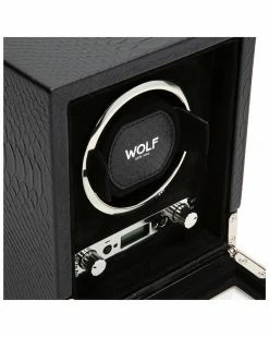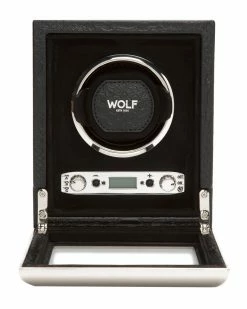 - Design details: Lose yourself in the beauty of black python embossed top grain cowhide leathers and shiny chrome frame. Precise turns per day using WOLFs patent technology, the exotic single winder is a perfect match for your timepieces. ; Patented Innovation – Every WOLF winder counts the precise number of rotations. All other winder estimate the number of rotations.