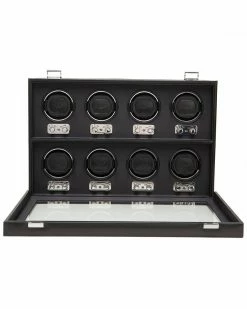 - Design details: The Heritage Men’s collection offers functional, classically designed pieces for your everyday use. This winder includes 8 winding modules, latch closure, glass cover, chrome finished hardware, black smooth vegan leather and satin lining.