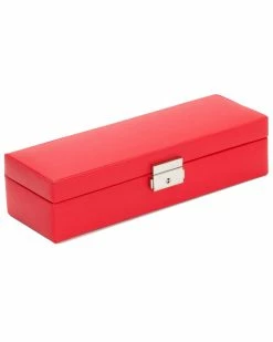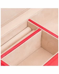 - Design details: Chelsea jewelry case, a classic style combined with functional design. Includes lock & key, 7 jewelry compartments, 1 ring roll, 1 watch compartment, glass mirror, gold finished hardware, red vegan leather and ultra-suede lining;