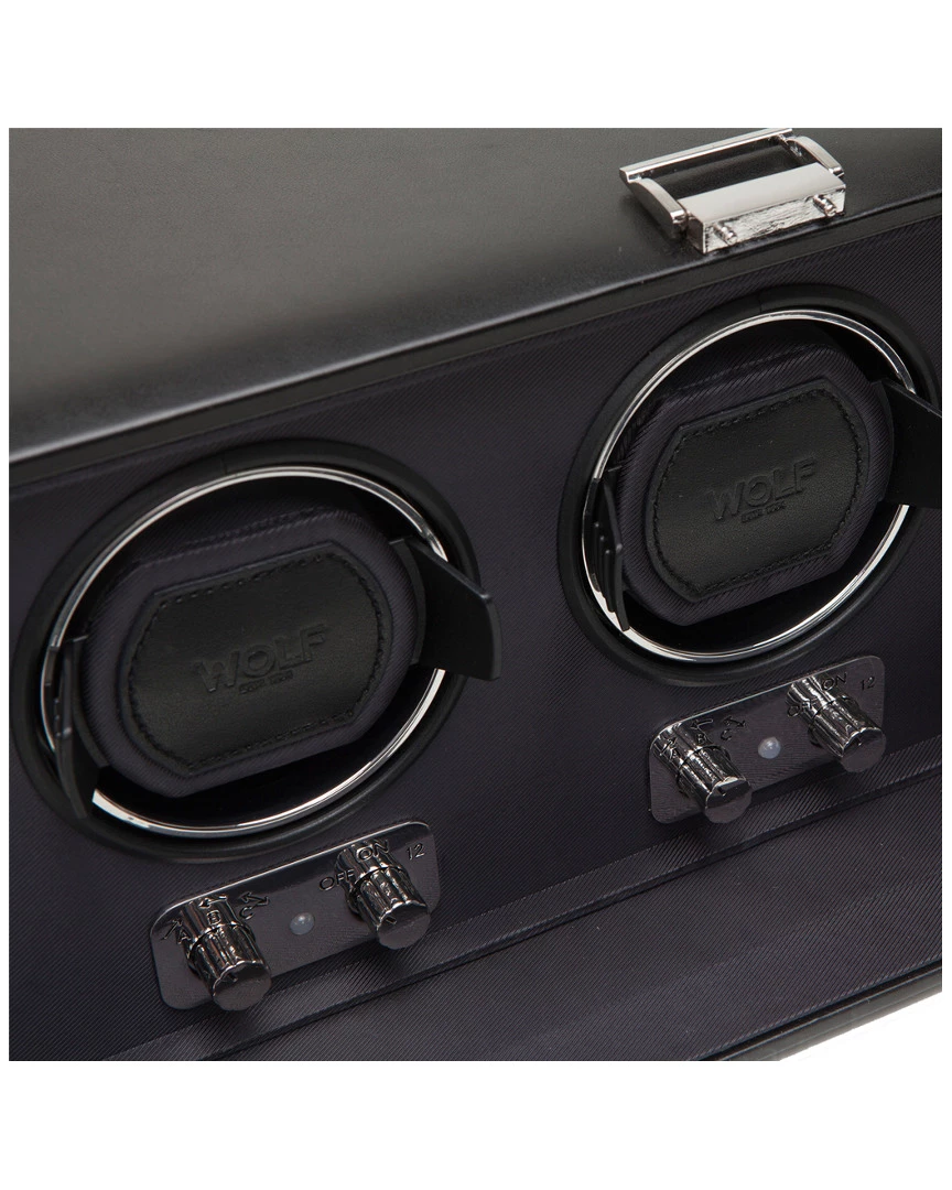 - Design details: The Heritage Men’s collection offers functional, classically designed pieces for your everyday use. This winder includes 3 winding modules, latch closure, glass cover, chrome finished hardware, black smooth vegan leather and satin lining; Patented Innovation – Every WOLF winder counts the precise number of rotations. All other winder estimate the number of rotations.
