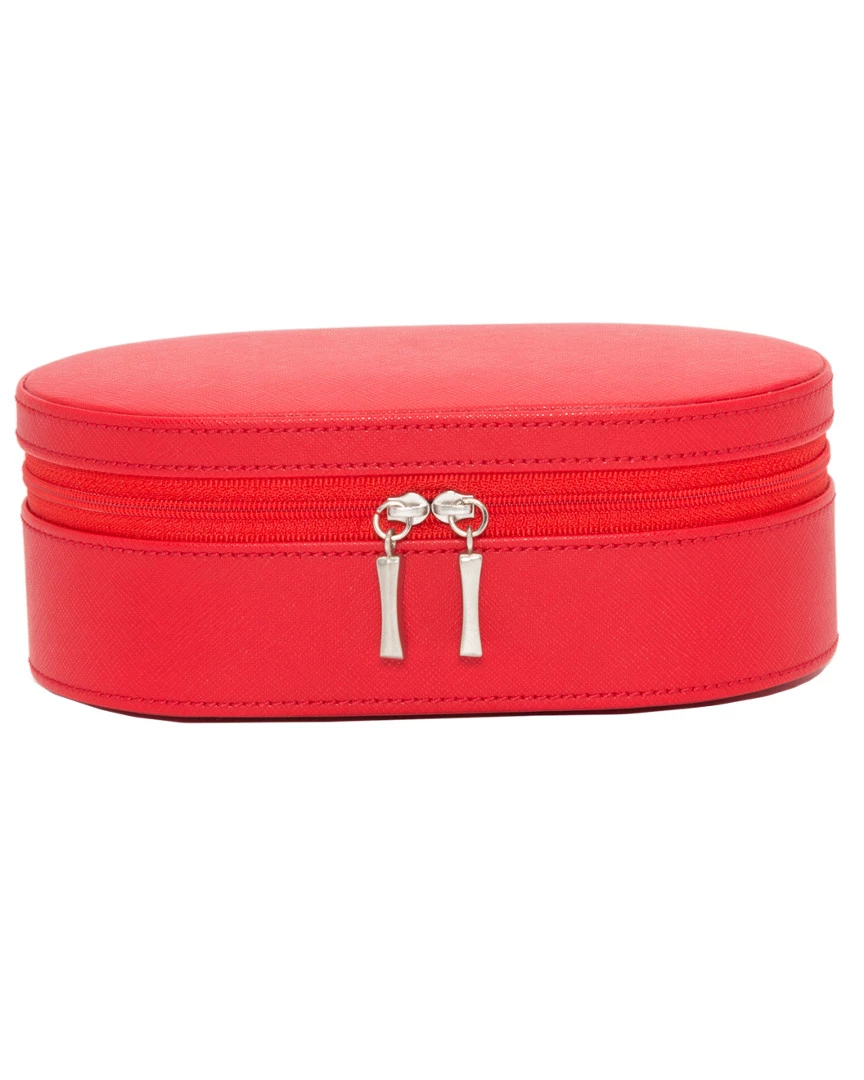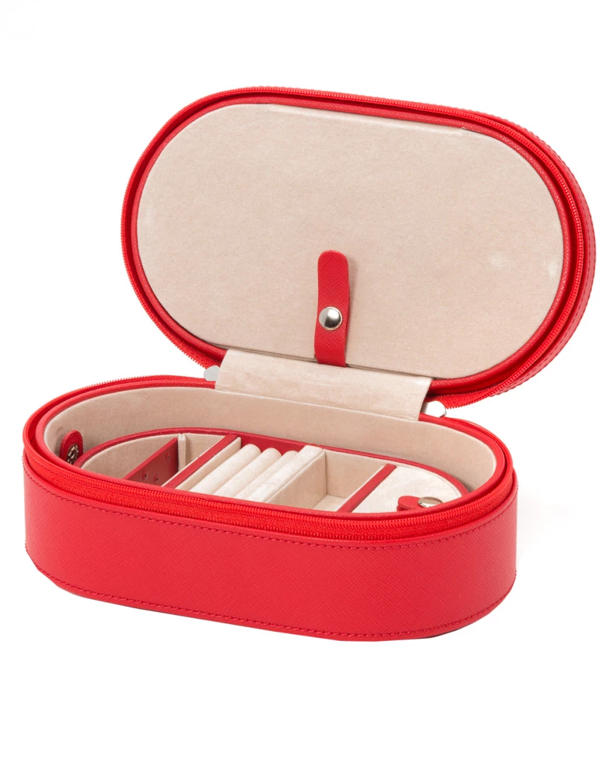 - Design details: vegan leather; Heritage Zip case, a classic style combined with functional design. Includes zip closure, 2 jewelry compartments, 2 necklace holders, travel case (4 compartments, 2 ring rolls and 6 earring holes), glass mirror, gold finished hardware, red vegan leather and ultra-suede lining.