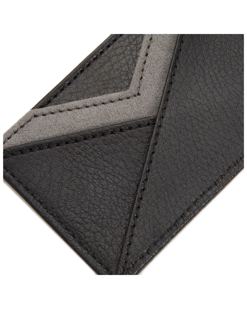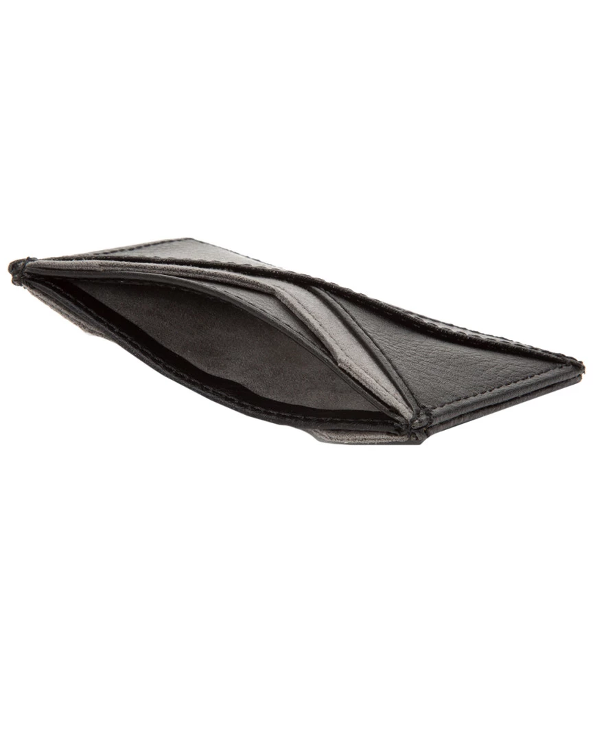 - Design details: handcrafted in genuine leather; Stylish and functional, the Howard collection matches todays man with his needs, loves and passions. Unlike the cumbersome traditional wallets, the Howard credit card holder in black pebble leather effortlessly organizes your cards and cash in a thin, sleek design. Includes an ultrasuede lining and 7 credit card compartments.