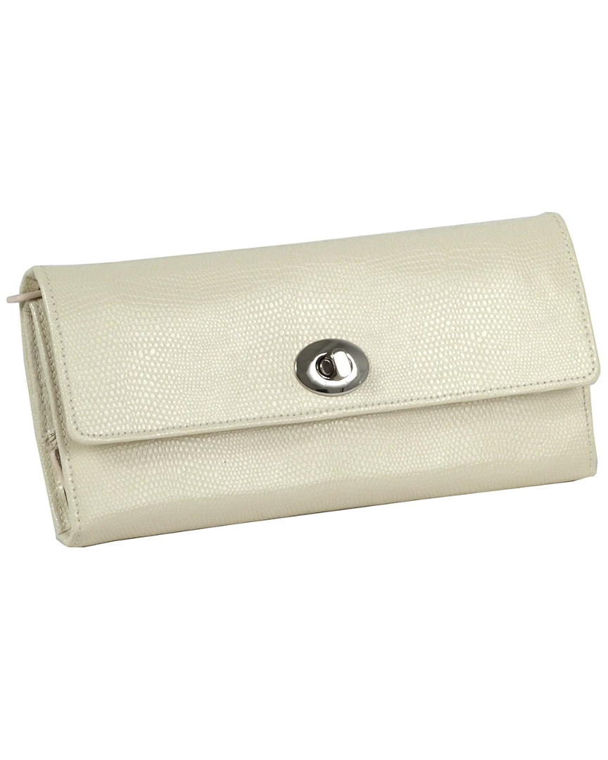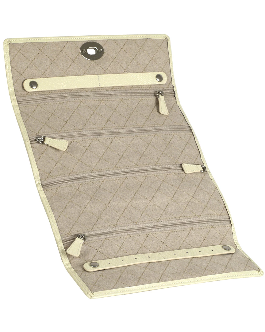 - Design details: A WOLF classic for over 10 years, London embodies the tradition of box-making, the style that is timeless and the simple delight of organizing our treasures. Avoid tangles and keep your jewelry organized on the go with the classic London jewelry roll. Includes beautiful cream lizard embossed leather, twist lock, and patented LusterLoc lining; Storage: 4 jewellery compartments, 2 ring rolls, 8 earring holes