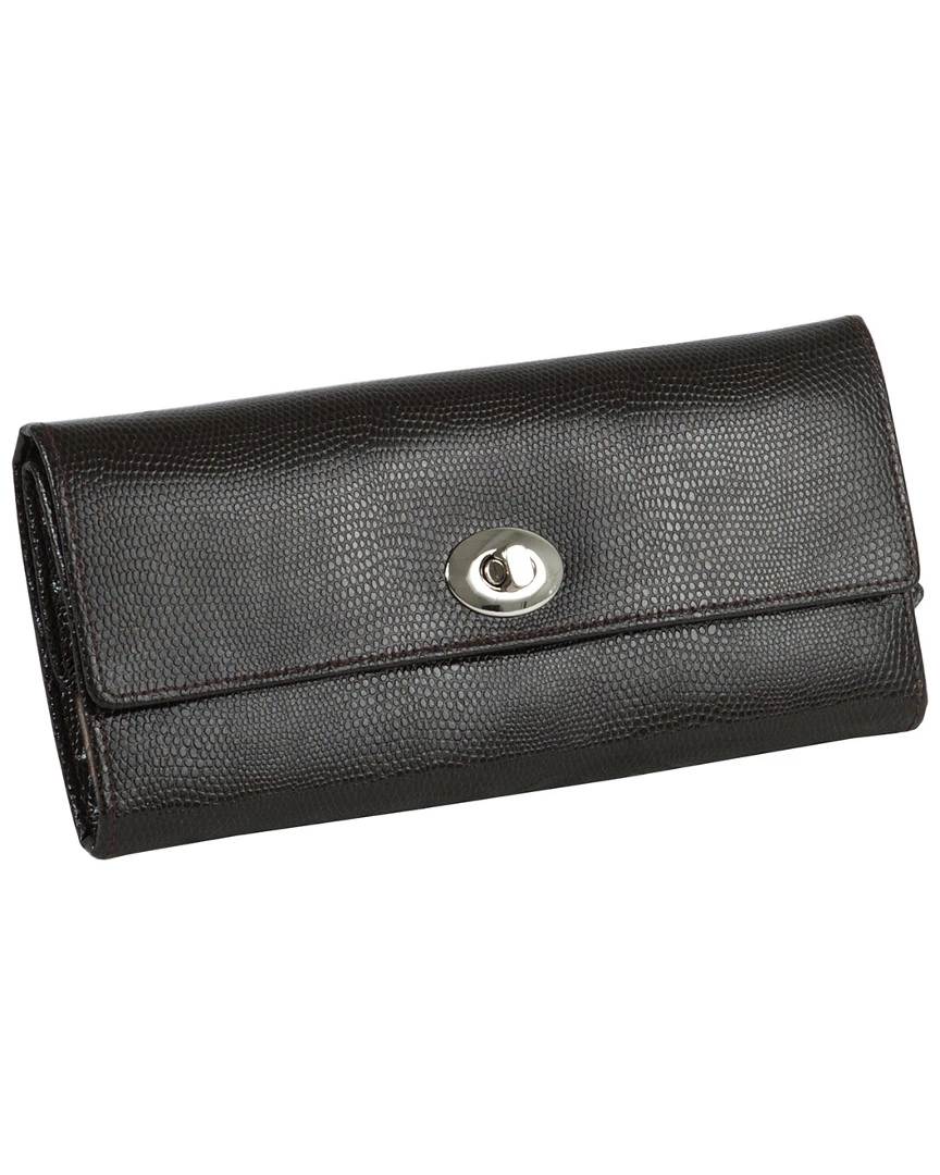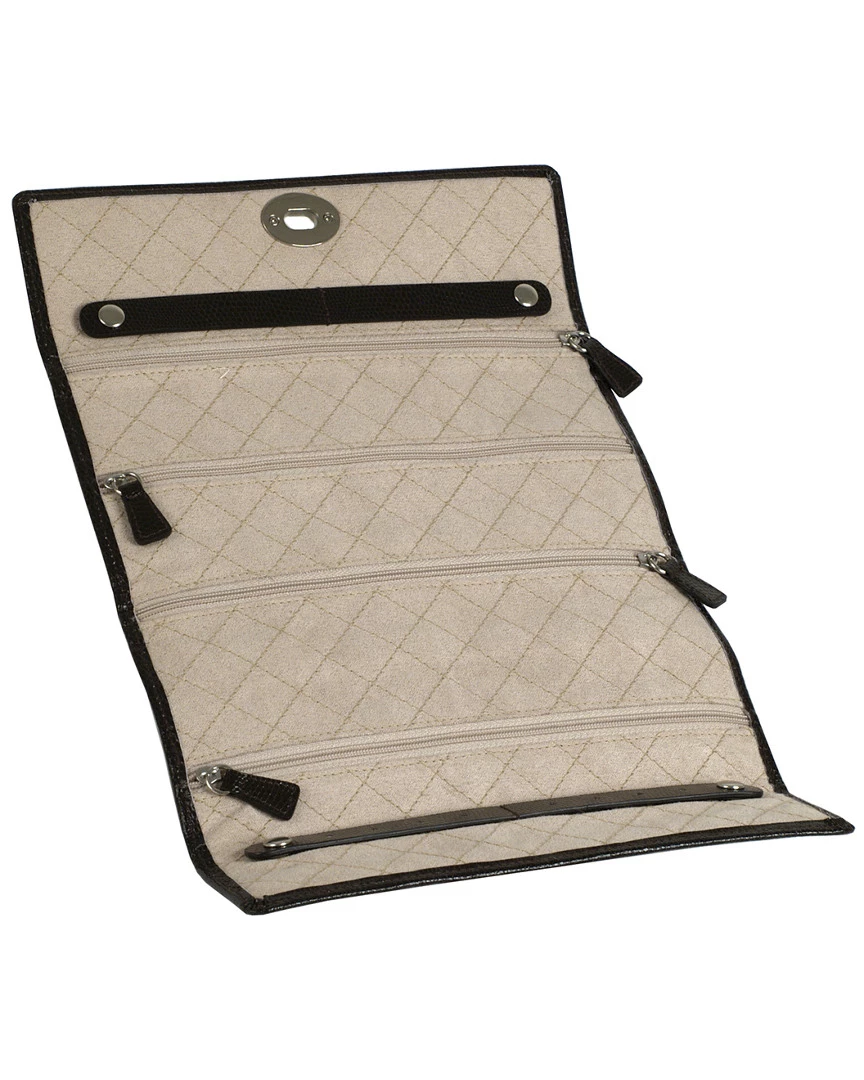 - Design details: A WOLF classic for over 10 years, London embodies the tradition of box-making, the style that is timeless and the simple delight of organizing our treasures. Avoid tangles and keep your jewelry organized on the go with the classic London jewelry roll. Includes beautiful cocoa lizard embossed leather, twist lock, and patented LusterLoc lining; Storage: 4 jewellery compartments, 2 ring rolls, 8 earring holes
