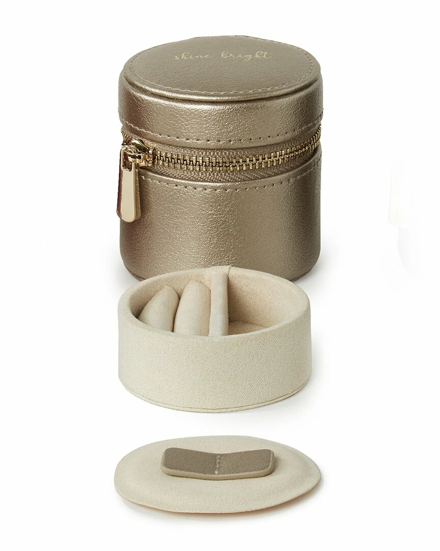 - Design details: perfect for travel and easy to throw in a purse or suitcase, each mini zip case includes a removable storage compartment for safely storing rings and other small jewelry. each mini zip case is made with top grain leather and a bright saying in gold script.