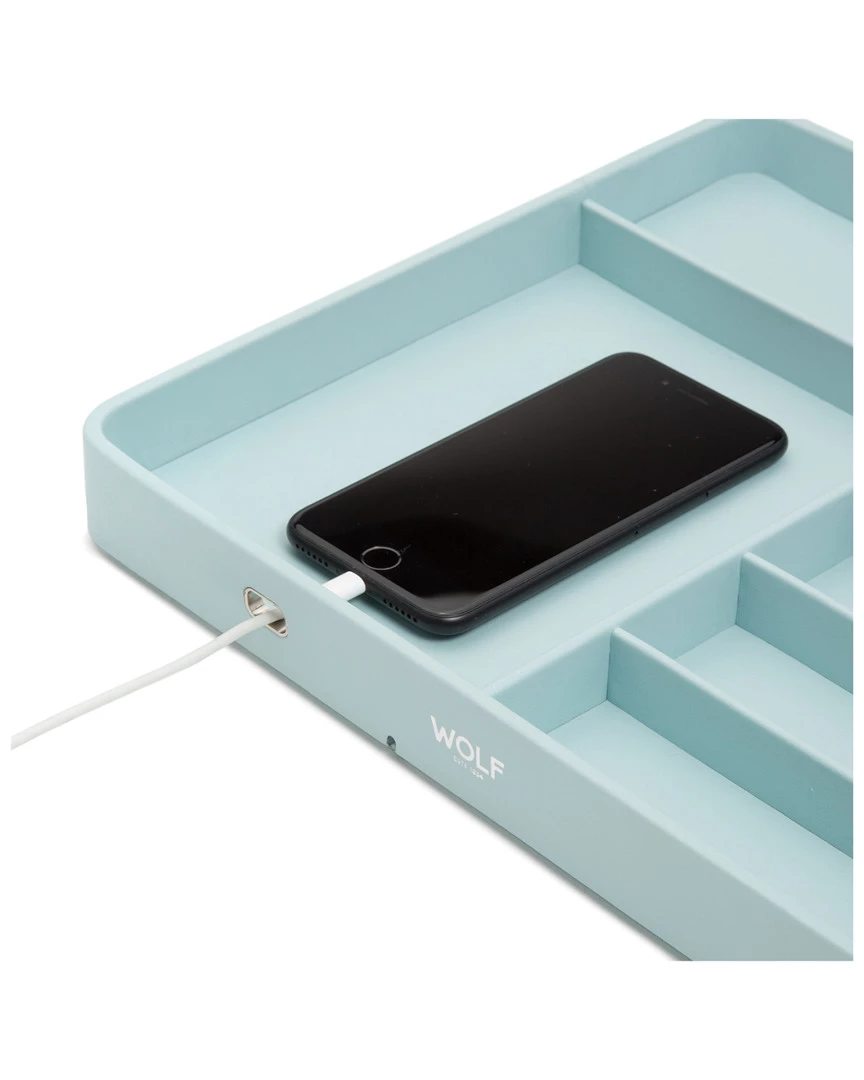 - Design details: vegan leather; smart storage solutions for Apple Watches and smart watches deliver high-tech performance along with quality craftsmanship. The aqua Watch Valet w/ Strap Tray for Apple Watches feature 10 compartments for Apple watch straps, charge port, and a docking station for cable and charging puck. Everything you need in one cohesive place. Magnetic charging cable not included.