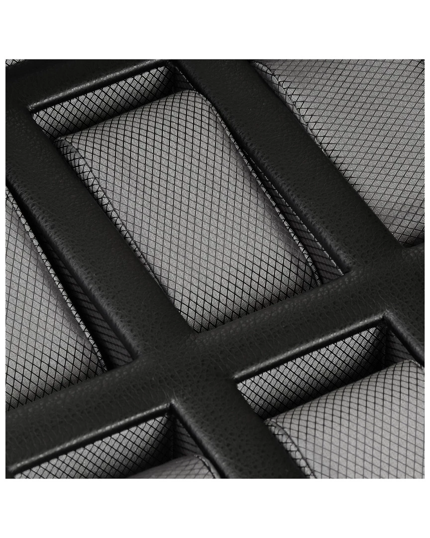 - Design details: Retro shapes and colors make Windsor a perfect companion for your timepieces. Display and organize your watch collection and accessories beautifully with the Windsor 10-piece watch box with storage. Features chrome finished hardware, locking glass cover, smooth black vegan leather, silver textured silk lining, 10-piece watch storage and jewelry storage; Storage: Valet drawer (8 ring rolls, 17 jewelry compartments) and 10 piece watch storage (cuff will accommodate up to 52mm case)